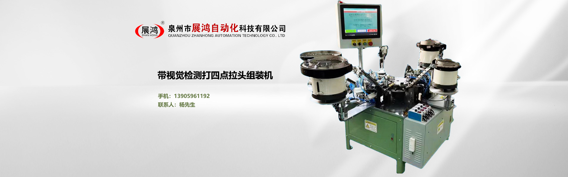 ??泉州市展鴻自動化科技有限公司始創于2003年,是一個集研發、制造、銷售為一體的現代化公司,專業從事研發、生產各類型號的全自動拉鏈頭裝配機。泉州市展鴻自動化科技有限公司始創于2003年,是一家集研發、生產、銷售、服務于一體的現代化拉鏈頭設備智能制造生產企業:專業從事研發、生產各類型號的全自動拉鏈頭智能裝配機。亦可根據不同客戶的需求,提供適合客戶自身需要的“私人定制”式專用拉鏈頭設備及自動檢測拉頭品質一體機。泉州市展鴻自動化科技有限公司始創于2003年,是一家集研發、生產、銷售、服務于一體的現代化拉鏈頭設備智能制造生產企業:專業從事研發、生產各類型號的全自動拉鏈頭智能裝配機。亦可根據不同客戶的需求,提供適合客戶自身需要的“私人定制”式專用拉鏈頭設備及自動檢測拉頭品質一體機。